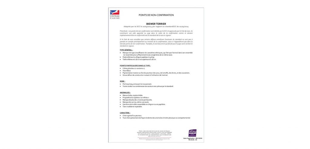 BIEWER TERRIER Contrat éleveur signataire de la charte de qualité du YTC et BT