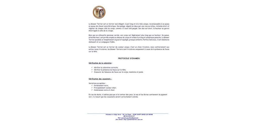 YORKSHIRE TERRIER Contrat éleveur signataire de la charte de qualité du YTC et BT